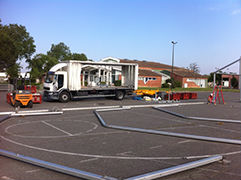 Vue d'ensemble d'un démontage d'une structure 10x30 avec parquet