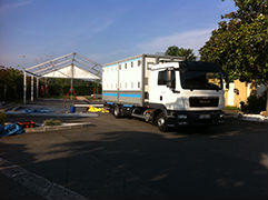 A chaque montage, nous pouvons vous fournir un extrait du registre de sécurité pour la tente et les équipements électriques. Toiles anti-feu classe M2.