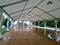 Vue intérieure d'une structure 10m x 20m avec parquet vitrifié sur ossature alu et extension d'une piste de danse extérieure 5m x 10m soit 50m2.