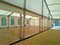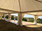 (5m x 10m) avec parquet sur ossature alu, gouttière de jonction et rideaux de séparation.
