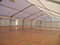 Vue intérieure d'une structure 10m x 30m soit 600m2 avec parquet vitrifié sur ossature alu, éclairage indirect par halogènes et ouverture sur les 4 côtés.